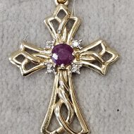 Złoty krzyżyk z rubinem i diamentami