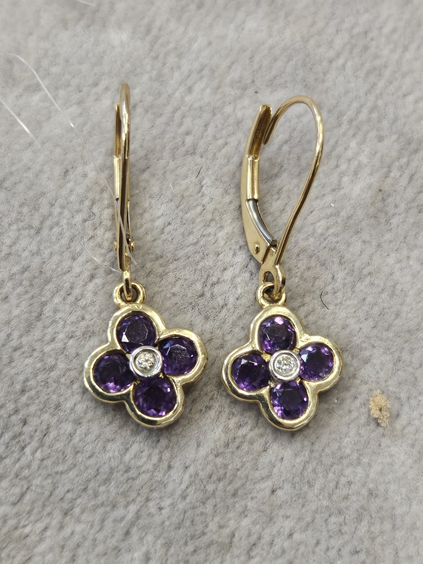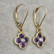 Para kolczyków złotych z ametystami i brylantami