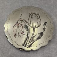 Pudernica srebrna z tulipanami Warszawa po 1931 r.