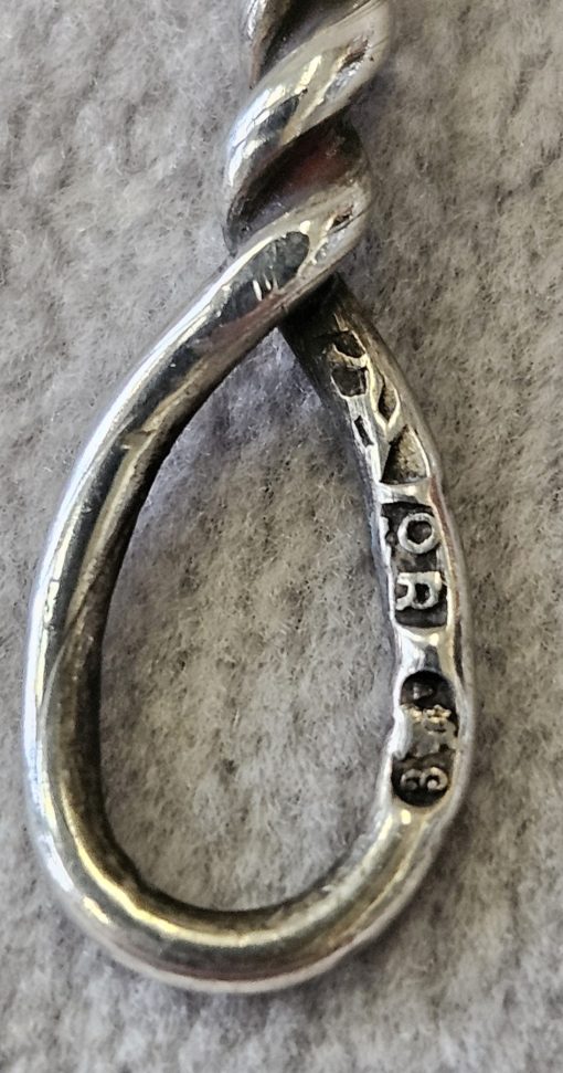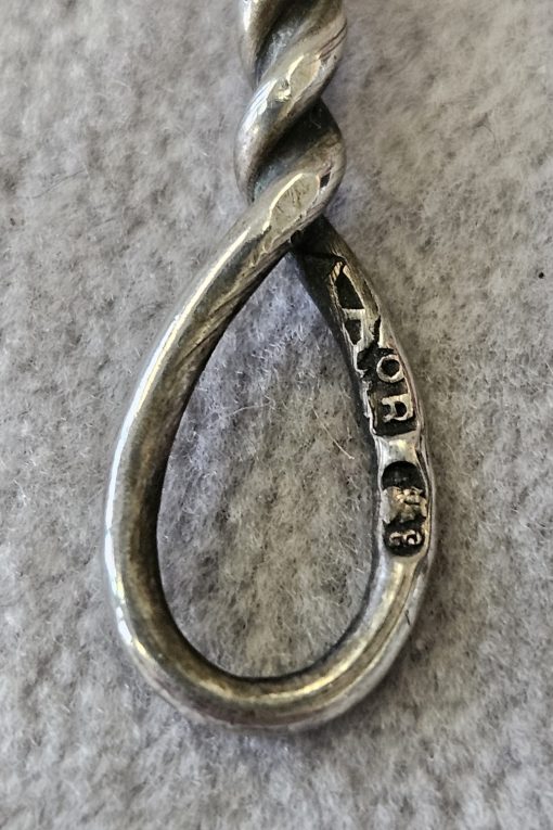 Łyżeczki srebrne ORNO Warszawa przed 1963 r. 6 szt., srebro próby 3 ; waga 33 g. dł. 10 cm.,  cechowane; w owalu 3, głowa kobiety w chuście i W cecha probierni warszawskiej; oraz znak firmowy ORNO. Biżuteria Orno. Warszawa, Spółdzielnia Pracy Rękodzieła Artystycznego ORNO (czynna od 1949 r.)