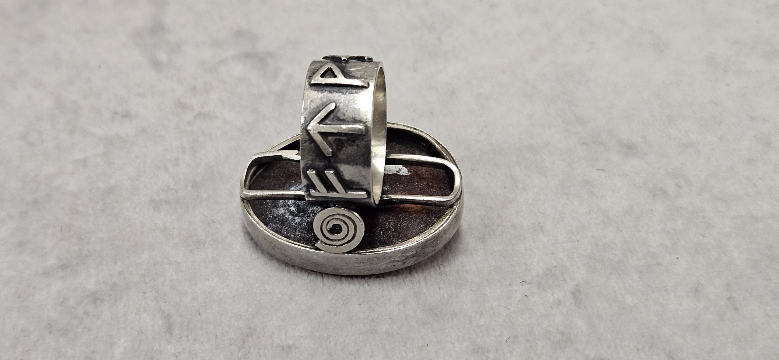 Pierścionek srebrny z bursztynem. Srebro waga 16,4 g. wym. kopułki 35×28 mm. rozmiar 23. Pierścionek ręcznie wykonany na zamówienie lata lata 80 te XX w.