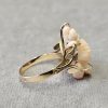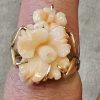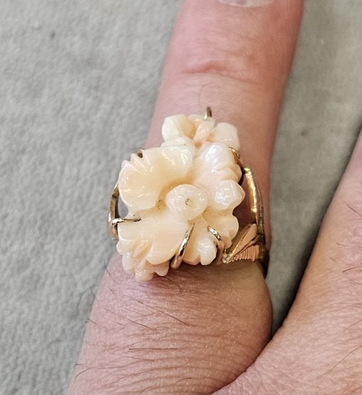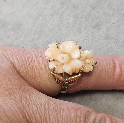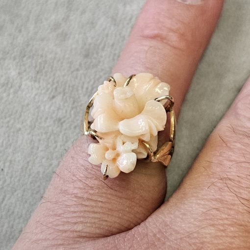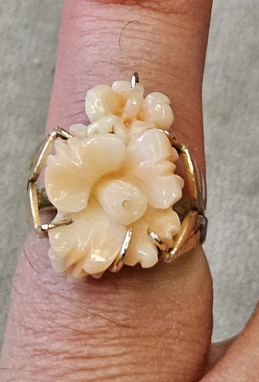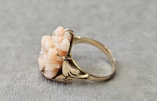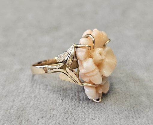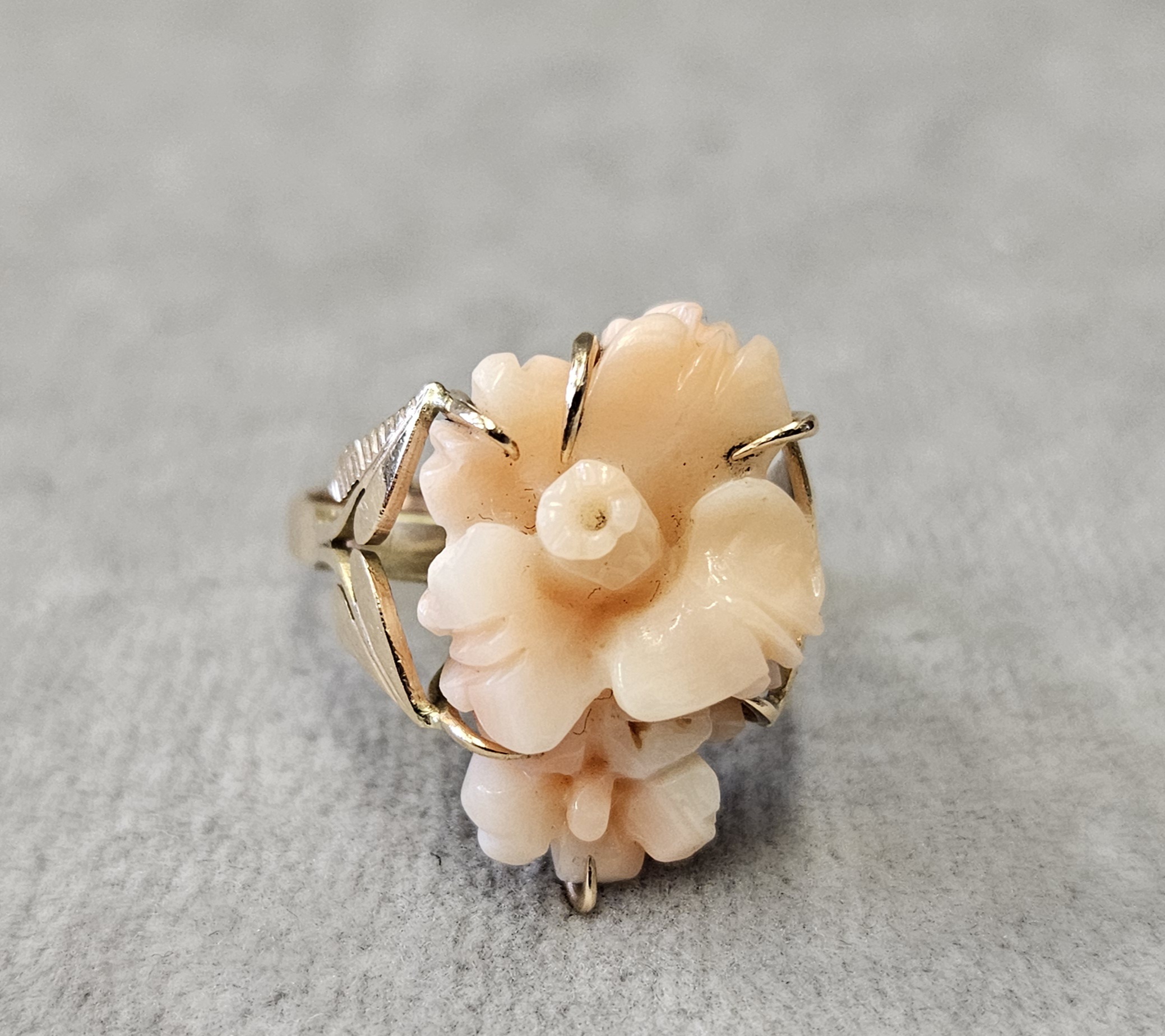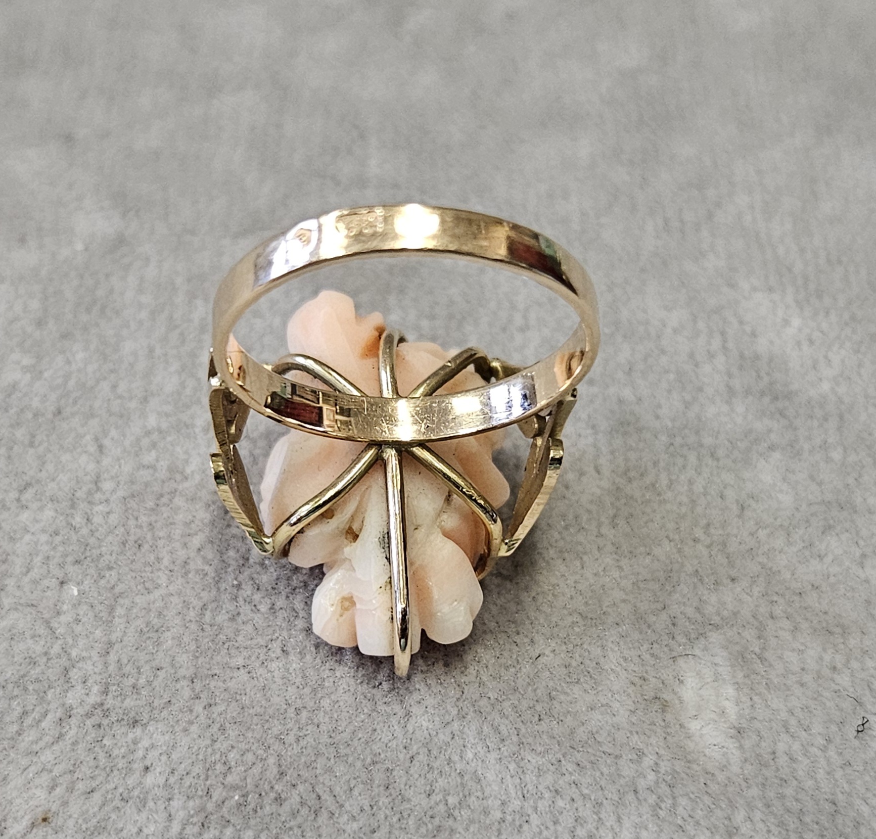 Pierścionek złoty z koralem złoto pr. 583, dł. 22 mm. szer. 19 mm., , waga 6,06 g. koral naturalny. Rozmiar 15/16. cecha; W, głowa rycerza i 583 w prostokącie . cecha Warszawska po 1963 r. Zainteresowanych Proszę o kontakt w sprawie kosztów przesyłki ( 15 zł.)