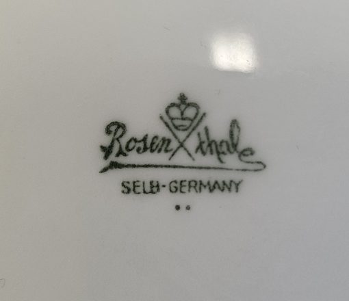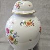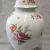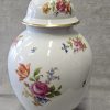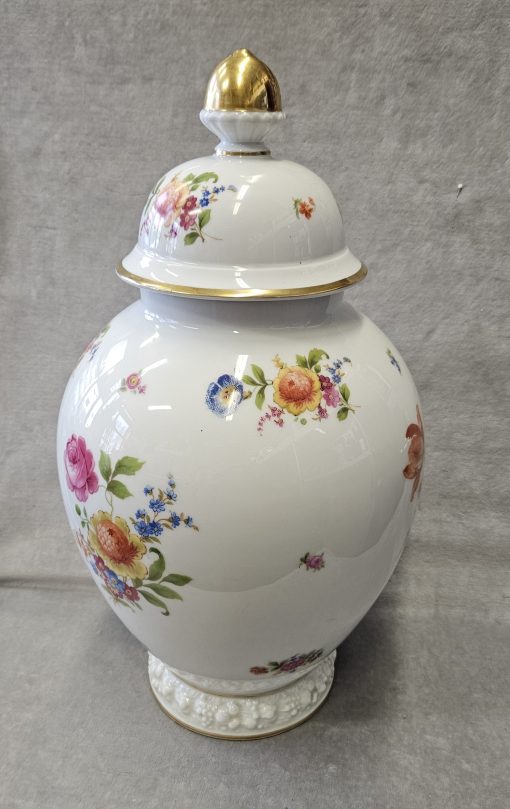 Wazon z pokrywką Rosenthal Maria 1936 r. amfora Wazon potiche z pokrywą, porcelana, farby naszkliwne – druk barwny, złocenia; wys. 41cm, średn .podstawy 13,4 cm; sygn. zielenią chromu druk: korona 2-dzielna / Rosenthal / SELB – GERMANY / dwie kropki. Niemcy, Selb (Bawaria), Rosenthal model Maria 1936 r. Zainteresowanych Proszę o kontakt w sprawie kosztów przesyłki