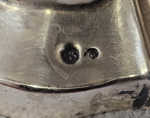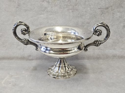 Cukiernica srebrna XIX w. srebro pr. 13 (812) waga 138 g. wys. 9 cm. z uszami 11,5 cm Sr. 13cm z uszami 20 cm. srebro 13 łutowe