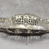 Patera srebrna ażurowa z puttami Srebro, próba 800, waga. 184 g. wym. 25,5x18x3,5 cm. Puncowanie: półksiężyc, korona, 800. koszyk patera z dekoracją kwiatową i puttami. Niemcy po 1888 r.